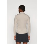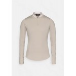 Featuring a ribbed collar, quarter zip and ventilating punch holes, it’s built to perform and easy to wear.