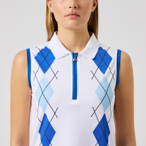 A sleeveless top with a soft, stretchy feel and a refined argyle placement print at the front. The quick-drying, moisture-wicking fabric keeps you cool and comfortable during active days. Designed with a ribbed collar and a half zip for a sporty touch, while the rounded hem with side slits and smooth binding around the armholes create a clean, flattering silhouette.