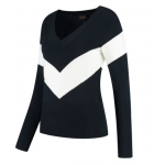 Introducing the Belle Pullover Dark Navy Light Blue – an essential piece for staying cozy on breezy summer evenings. Whether you're playing golf or simply enjoying the outdoors, its V-neck and stretchy fabric will not only keep you warm but also flatter your figure.