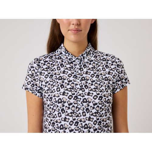 Sheermotion is a short-sleeved golf top designed for style and movement, made from soft stretch jersey for flexibility and comfort.